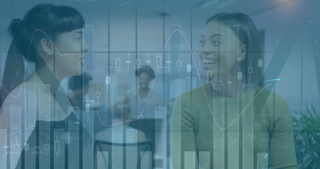 - Animated Financial Data Overlay on Businesswomen Collaborating