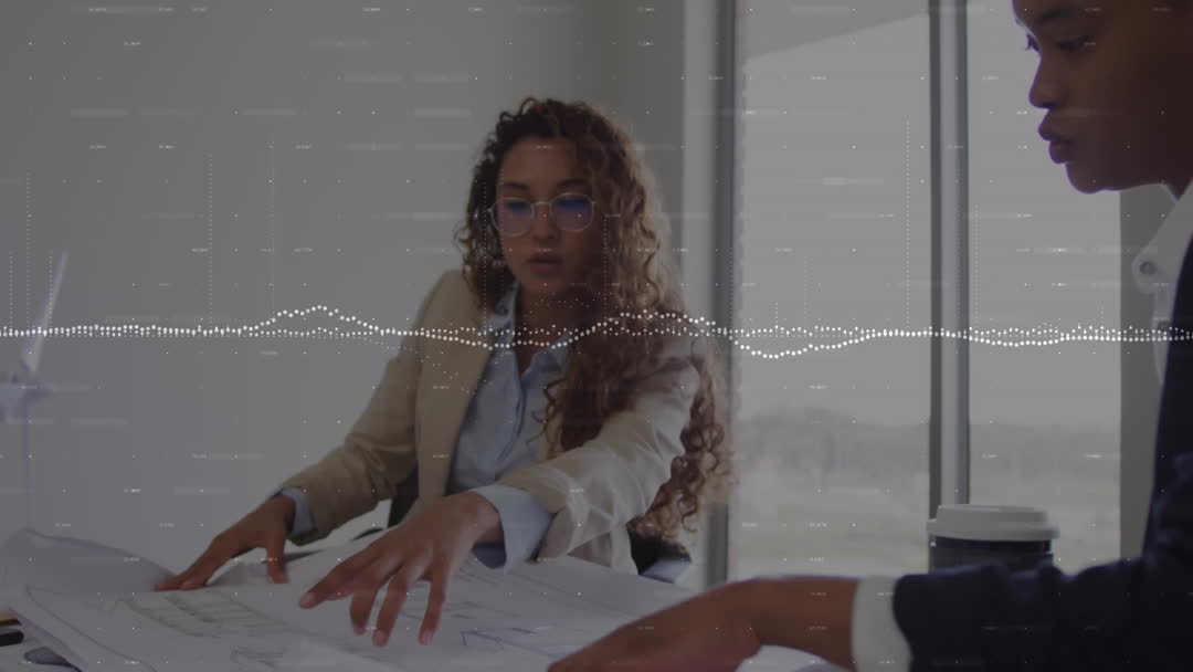 - Animated Financial Data Overlay on Professional Collaboration