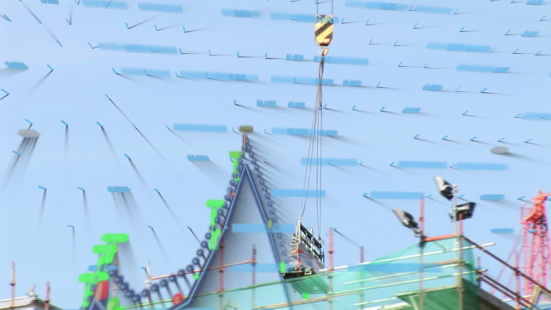 The video showcases a blend of digital financial data with a vibrant animation overlay on an active city construction site. Highlights thematic connections between global finance, technological advancement, and architectural growth. Useful for presentations on modern business practices, financial technology developments, or urban planning initiatives.