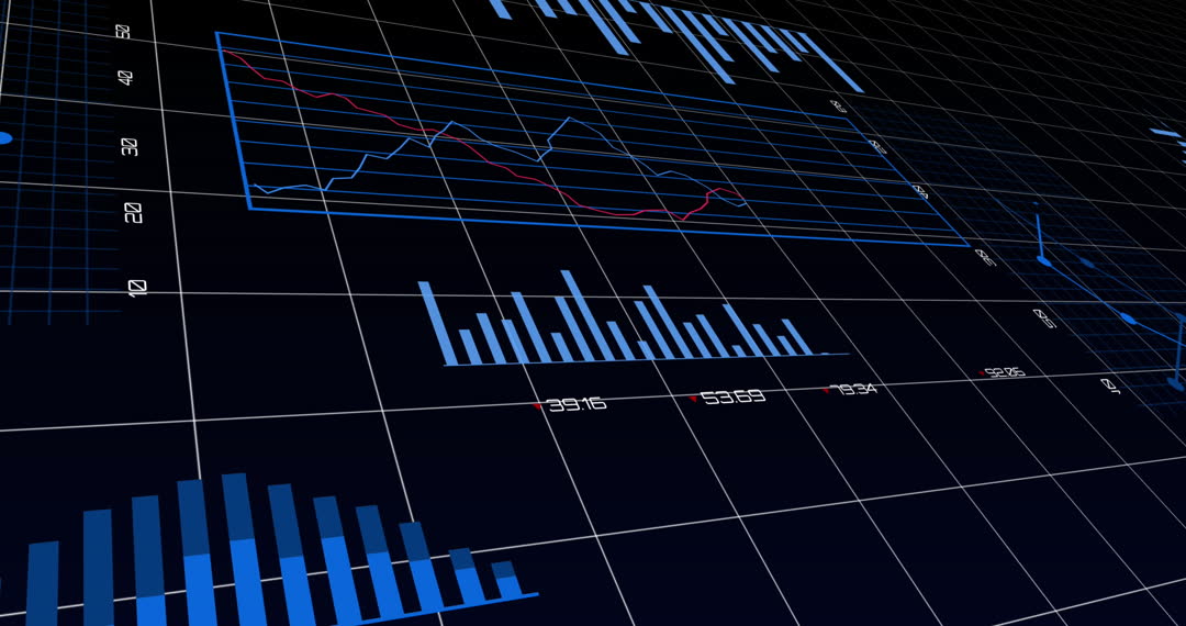 This illustration features animated charts and graphs displayed on a grid background, conveying modern financial data processing. It is ideal for depicting concepts related to business analytics, economic forecasting, or digital technology advancements. It can be used in presentations about finance platforms, investing strategies, or business courses.