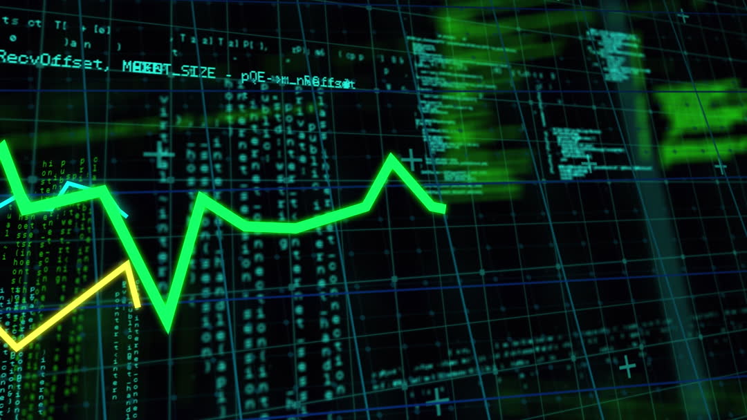 This animation depicts fluctuating financial graphs set against a backdrop of data, symbolizing stock market analysis and trends. Perfect for use in financial presentations, educational videos, and corporate communication to visually represent economic concepts and data interpretation.