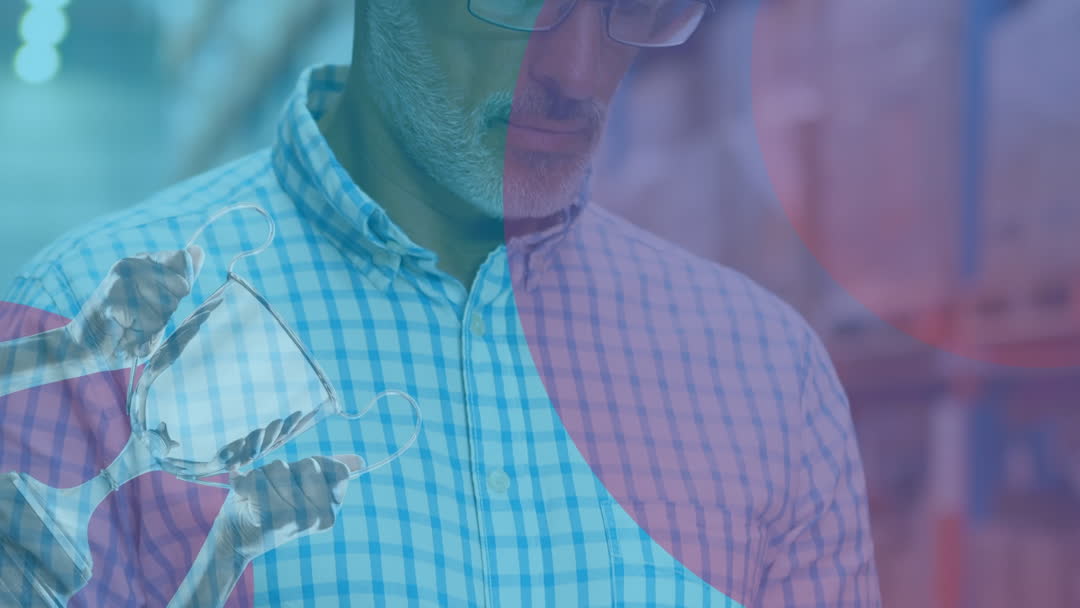 The video shows an animation of the French flag overlaying a man wearing a face mask, with an illustrated trophy beside him. Could symbolize triumph over challenges during the COVID-19 pandemic, offering themes of resilience and hope. Useful for illustrating global shipping, international trade, pandemic efforts, and symbolic achievements.