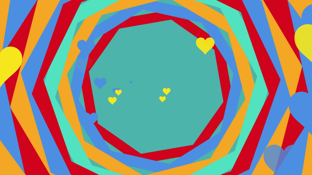 Animated Geometric Spirals with Vibrant Hearts Video