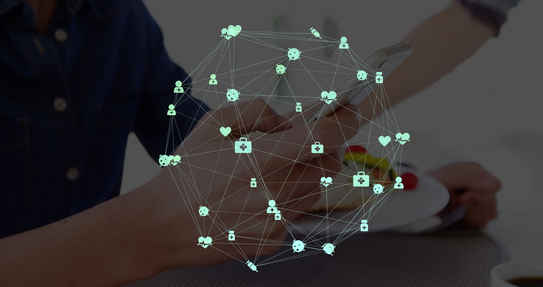 Visual depiction of global network connections represented by icons over men interacting with smartphone. Reflects the concept of internet of things and data sharing in digital communication. Ideal for use in technology blogs, digital advertising, or educational presentations about online connectivity and information exchange.