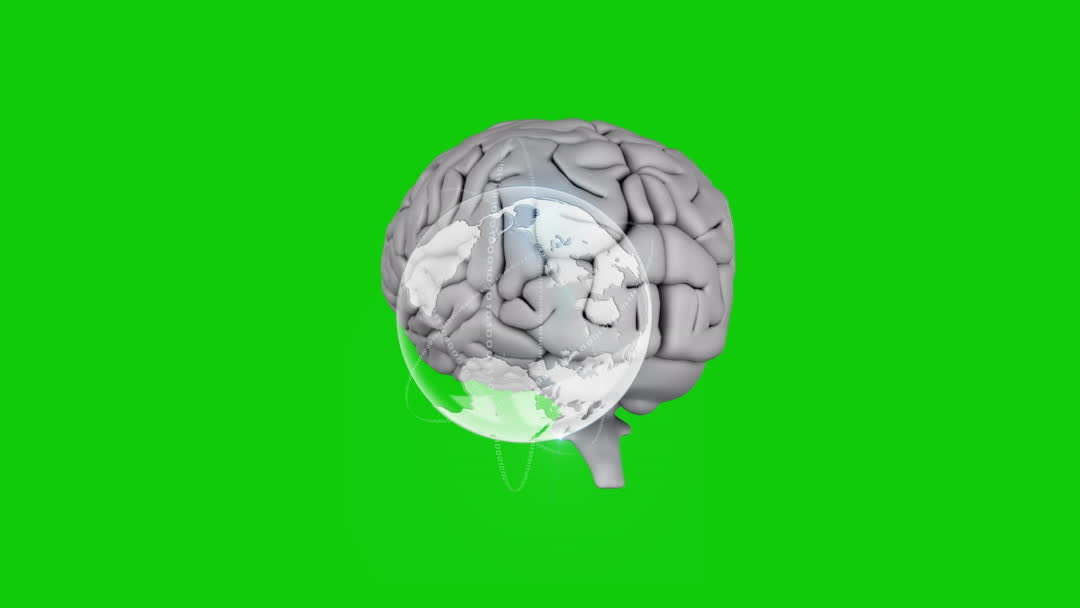 Animated Globe Rotating Within Human Brain on Green Background Video