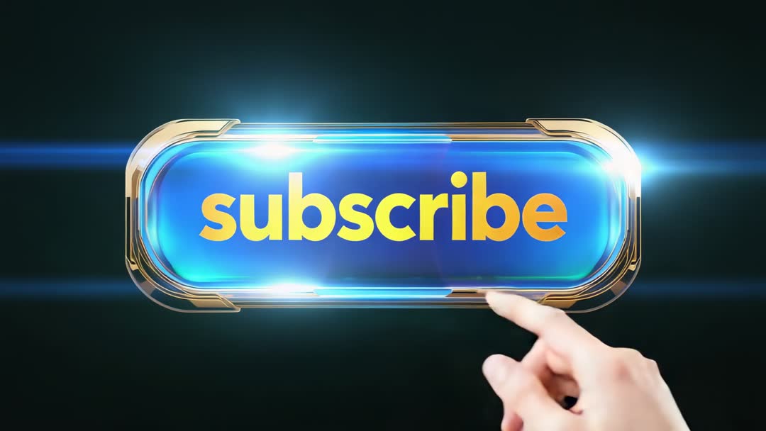 AI Generated Image. Featuring glossy 3D pill-shaped subscribe button in blue and gold, rotating slowly on dark void and emitting bright lens flares and horizontal light streaks while right hand tapping center. Focusing on bold yellow subscribe text, polished metal trim and high-contrast lighting for premium on-screen impact. Perfect for YouTube intros, Twitch overlays, streaming promos, channel trailers, endcards and social media ads. Driving subscriptions, boosting audience engagement, highlighting membership offers and prompting signups with clear visual CTA. Designed for compositing over footage, compatible with overlay tracks and stream software, usable as looped animation or single-trigger CTA; offering simple color and timing adjustments for brand matching.