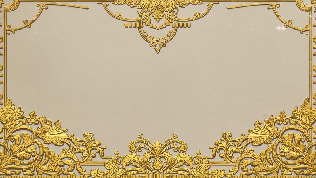 Animated Gold Ornate Frame with Sparkling Beige Panel and Baroque Scrollwork Video
