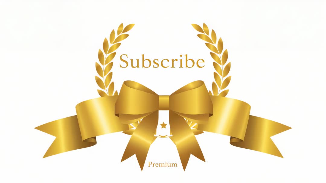 AI Generated Image. Featuring shimmering gold laurel wreath framing wide metallic ribbon tied into elegant bow, large "Subscribe" headline hovering above and small "Premium" label centered below with star accent. Clean white backdrop providing high contrast for on-screen placement. Smooth reflective highlights and subtle shadows creating polished luxury feel. Looping animation presenting seamless intro or call-to-action clip. Usage ideas include serving as subscribe call-to-action for YouTube channel or live stream promoting membership, acting as premium membership badge on landing pages and pricing pages, enhancing branded intros and end cards for video series, and boosting conversion in social media promos and email campaigns. Customizing text, color, and timing to match brand identity and exporting for HD or 4K delivery.