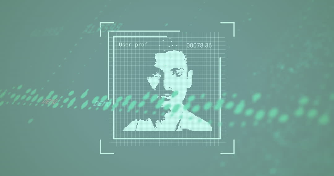 This animation features a digital holographic interface with a view finder and graphic overlays depicting technological concepts. Ideal for showcasing futuristic themes, technology talks, business reports, or content related to finance, non-fungible tokens, and digital innovation.