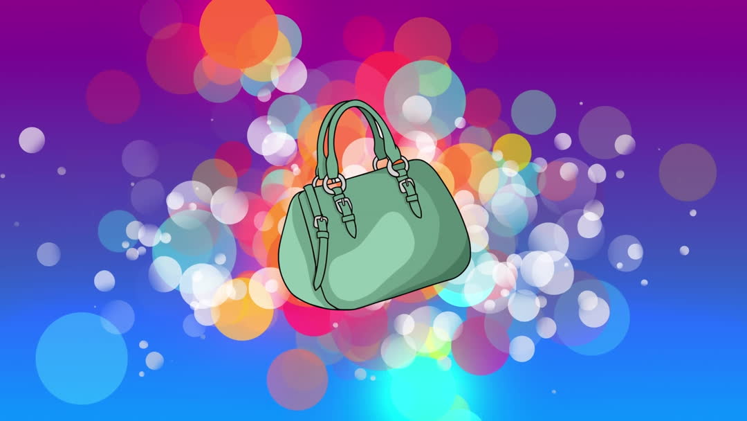 Animated Green Handbag on Vibrant Bokeh Background Video