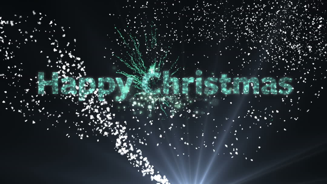 Graphic features animated 'Happy Christmas' text combined with shimmering light sparks, exuding holiday cheer and festivity. Ideal for digital holiday greetings, festive video backgrounds, and Christmas-themed presentations. Captures the spirit of the Christmas celebration season with dynamic sparkle effects.