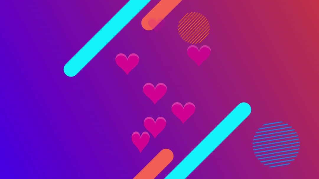 - Animated Hearts and Abstract Shapes on Vibrant Background