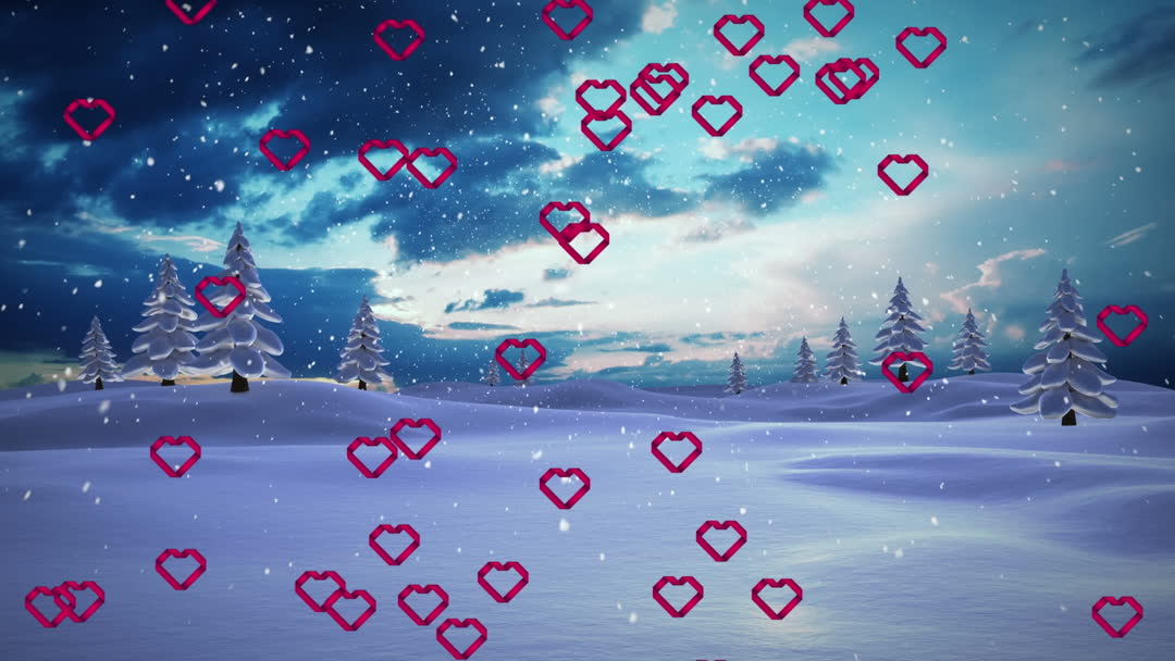 Animated Hearts and Snowfall in Winter Wonderland Video