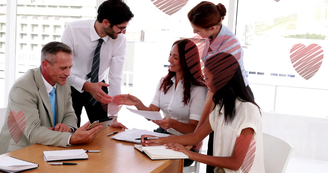 - Animated Hearts with Team Collaboration in Office Meeting