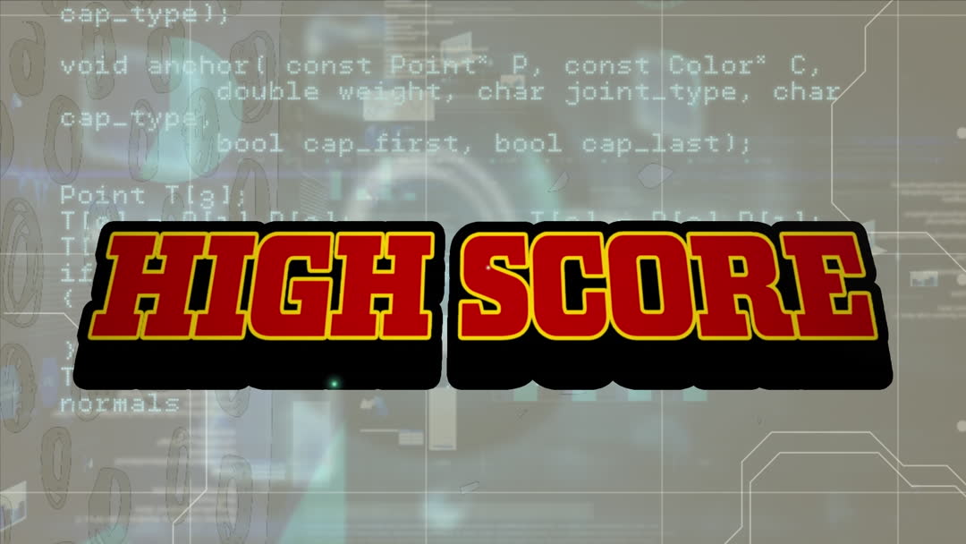 - Animated High Score Banner Overlaying Digital Data Interface