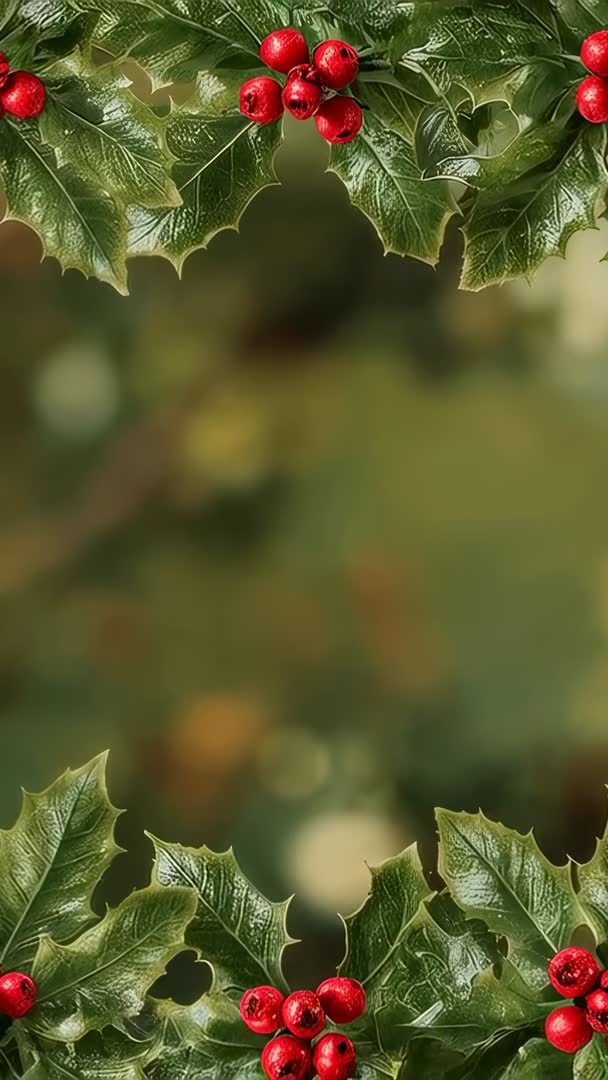 - Animated holly border revealing festive red berries over soft green bokeh vertical loop