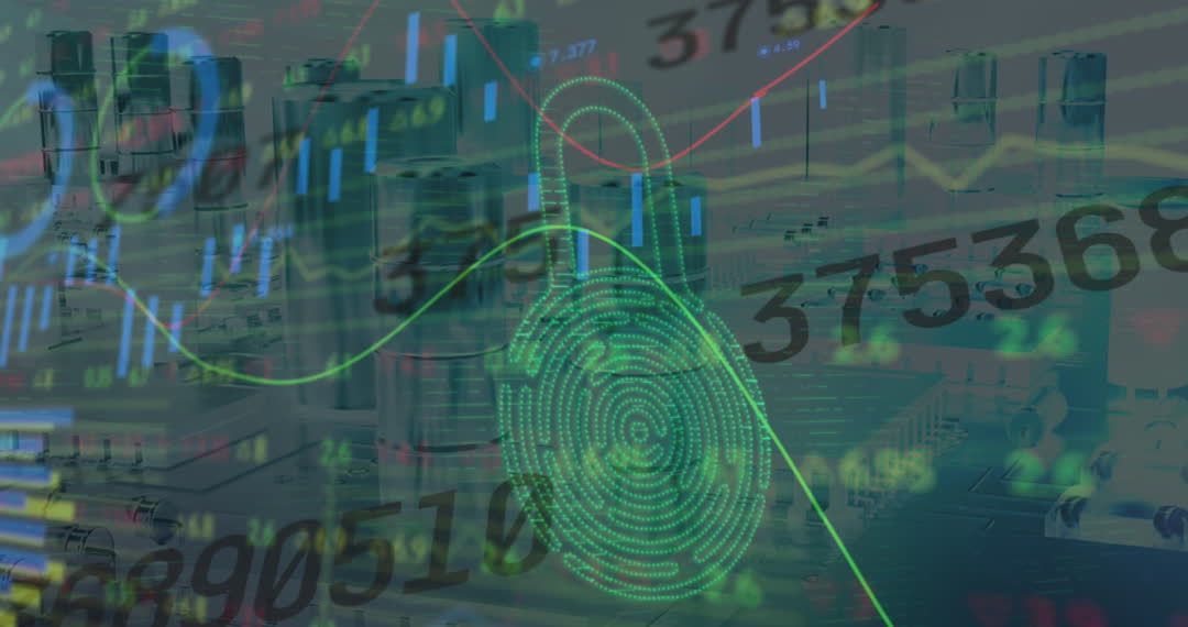An animated representation featuring financial data movement across a glowing digital padlock symbol, highlighting concepts of cybersecurity, data protection, and technology. Ideal for use in business presentations, cyber risk assessment reports, and digital security educational videos, highlighting the secure handling of financial data and international business connections.