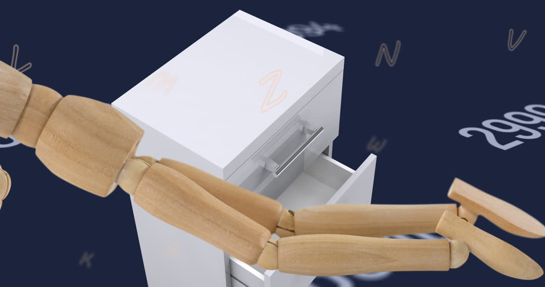 Animation showcases mannequin interacting with data, metaphor for modern digital processing and data management concepts. Useful for presentations on technology or business innovation, emphasizing integration of human elements with digital tools. Ideal for illustrating global enterprise tech ideas.