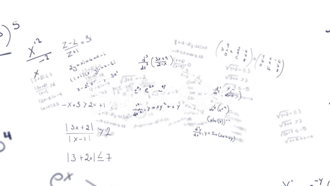 Dynamic visualization featuring animated mathematical formulas and equations over a white background. The concepts of data processing and problem-solving are suggested through various algebraic and calculus symbols, making it suitable for educational content or tech-related themes.