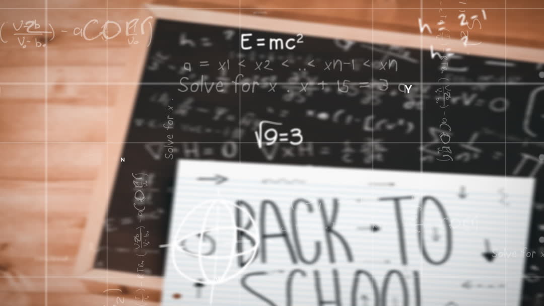 Animation combines mathematical equations with a 'Back to School' theme on a blackboard, ideal for educational materials, school marketing campaigns, or academic presentations promoting a new school year.