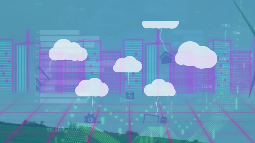 Animated Metaverse City with Data and Technology Icons Video