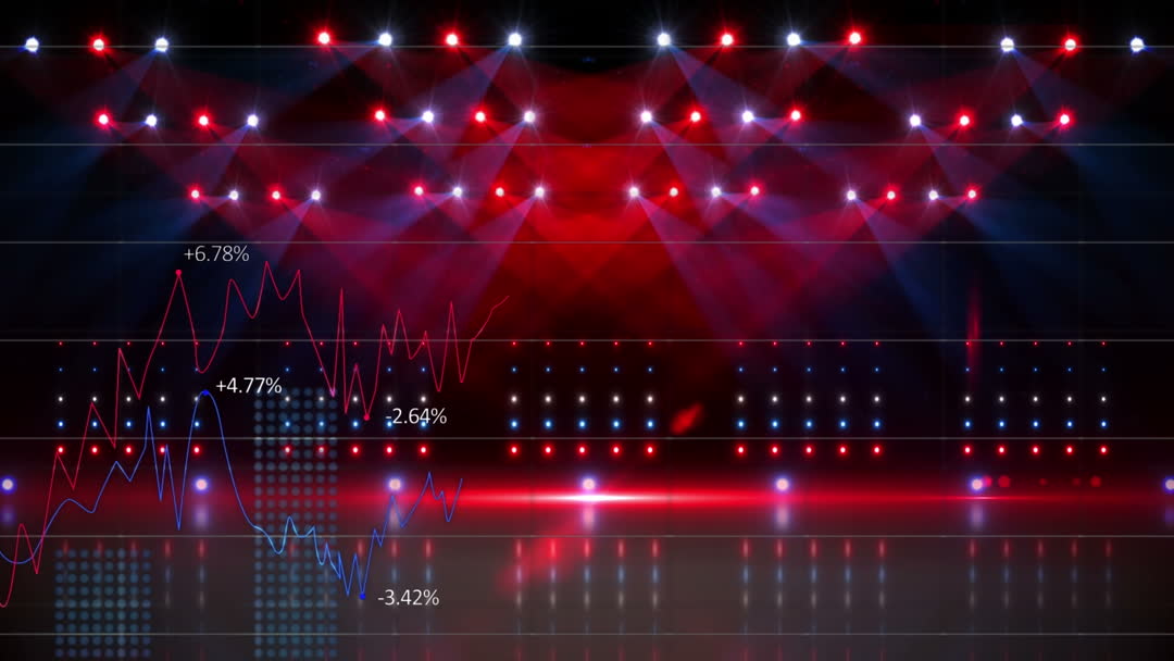 Animated Overlay of Financial Data and Red Stage Lights Video