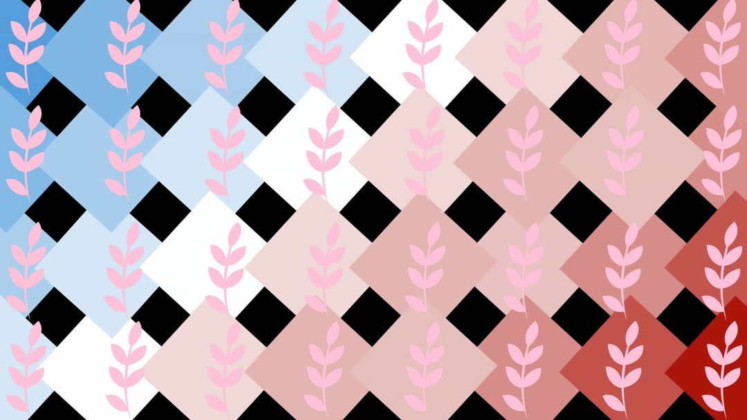 This visually striking art piece features animated pink leaves displayed against a backdrop of geometric squares with varying colors. The dynamic composition creates an intriguing pattern can enhance digital design projects, presentations, or multimedia content focusing on modern art, abstract visuals, or creative animations.