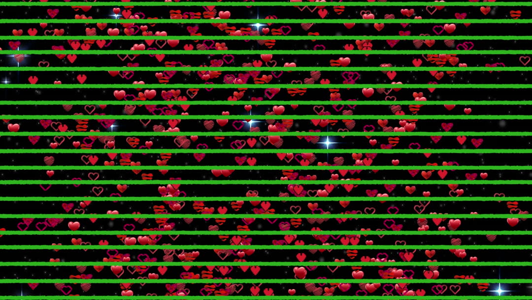 Features a dynamic mix of red hearts and stars interlaid with green stripes, conveying love and digital aesthetics. Perfect for use in digital art projects, online celebratory themes, romantic event promotions, or vibrant digital graphics.