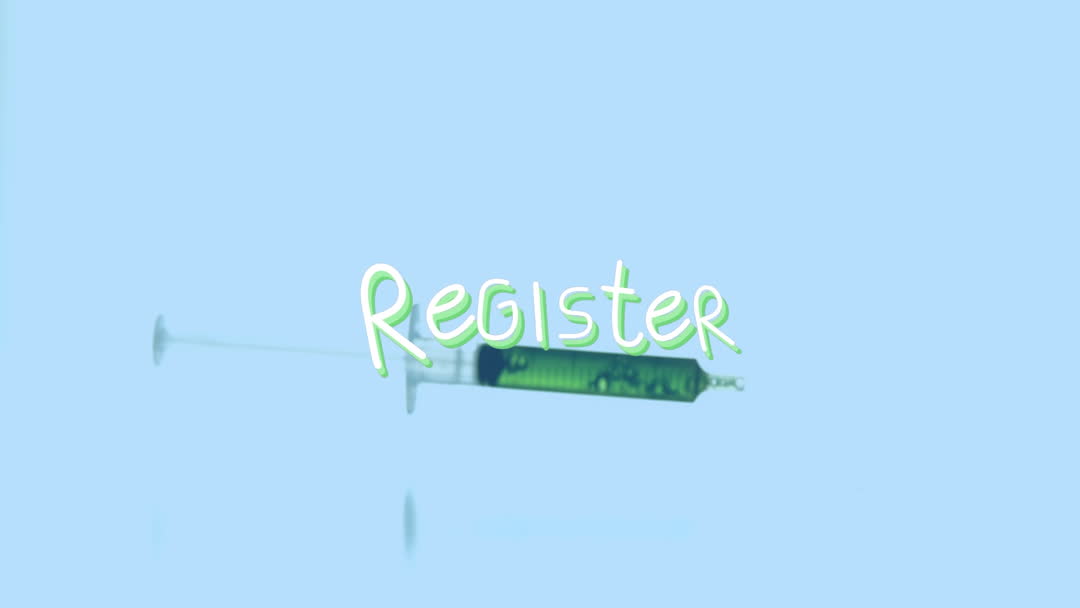 - Animated Register Text Overlaying Syringe Illustration