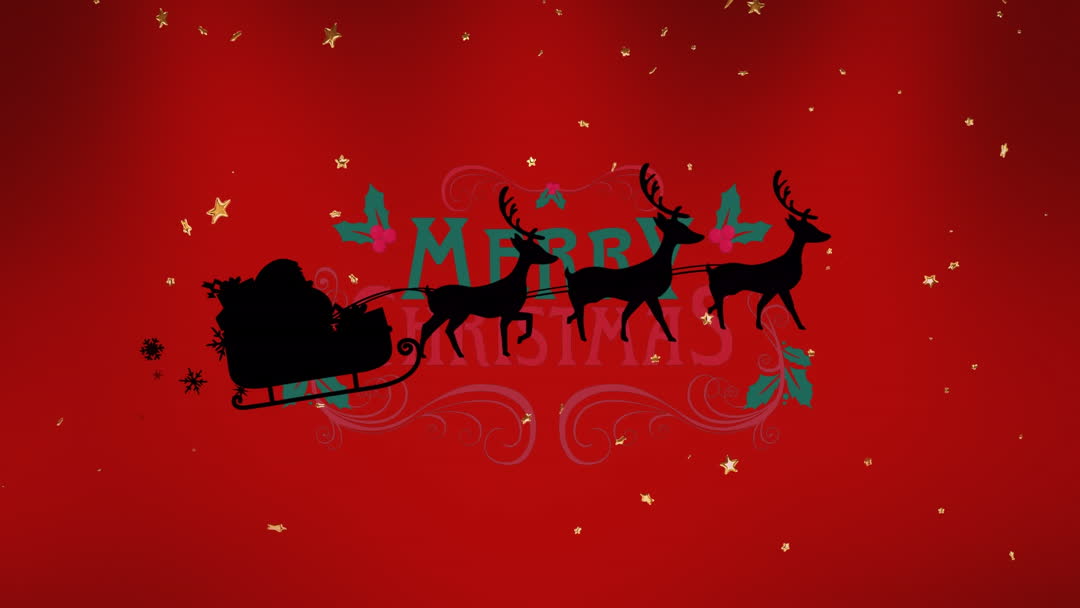 - Animated Santa Claus Sleigh with Reindeer on Festive Red Background