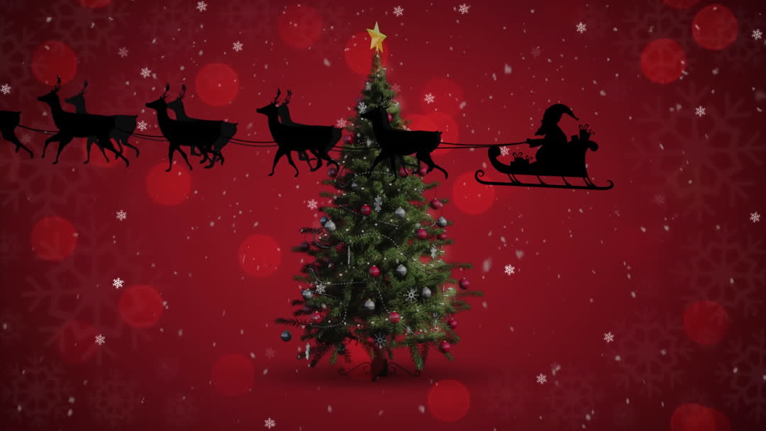 - Animated Santa Sleigh Passing Over Festive Christmas Tree