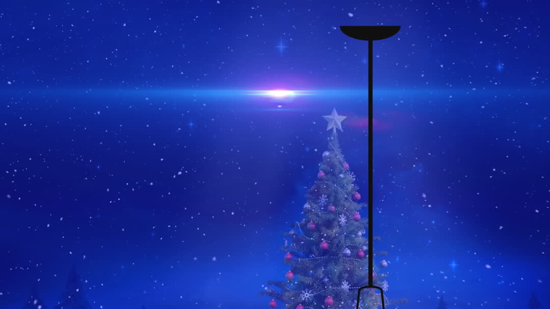 - Animated Snowfall Over Christmas Tree and Tall Streetlight