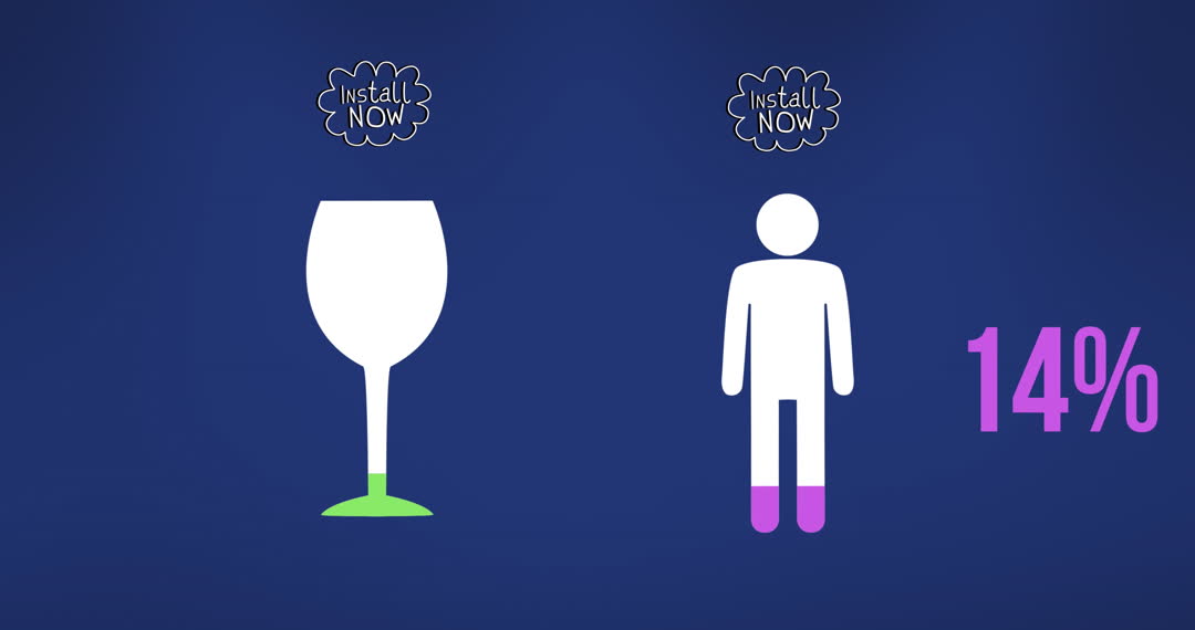 In this digital illustration, an animated 'Install Now' icon draws attention toward the stylized wine glass and person pictogram, set against a sleek blue background. The pink percentage indicator is featured prominently, emphasizing growth or change, lending an impact to concepts related to social media metrics, online marketing, and digital community engagement. Ideal for promotional materials or presentations themed around technology adoption and growth analytics.