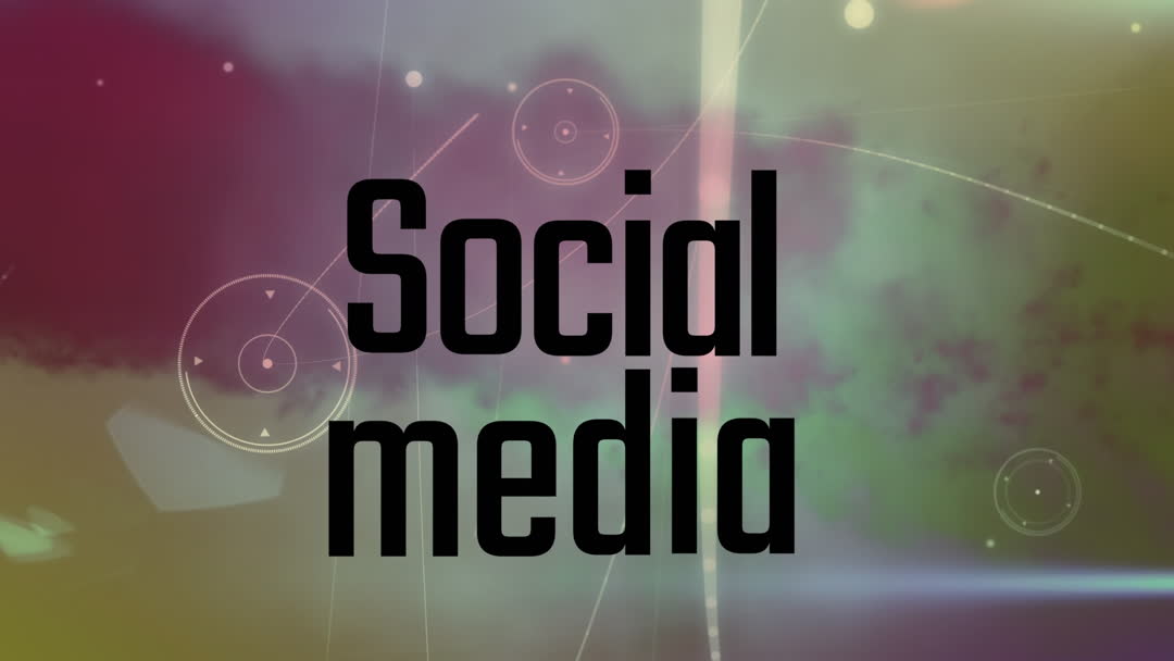 This dynamic animation featuring the phrase 'social media' across a backdrop of digital and cloud-like effects conveys themes of connectivity and communication. Suitable for use in presentations, websites, or digital advertising promoting social media strategies, global digital business, and technology advancements.