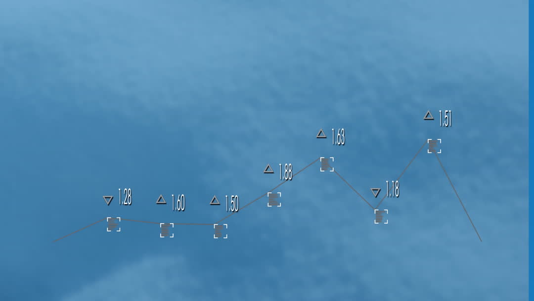 Animation depicts statistical data analysis on textured blue backdrop. Features include digital graph lines and icons, suggesting connections to business intelligence and market trends. Useful for illustrating technology solutions, data analysis software, corporate presentations, trend analysis reports, and business development concepts.
