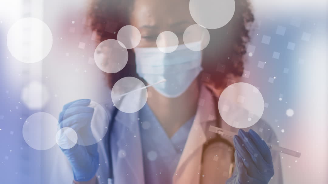 An animation of surgeons wearing face masks, blended with a dreamy circular and square bokeh overlay, suggesting progression and care within the medical field. The tranquil design provides a unique approach to visual storytelling in healthcare settings. Suitable for use in medical blogs, healthcare promotions, safety guidelines, or educational material focusing on healthcare and emotion.