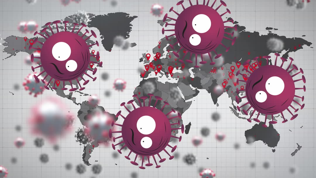 - Animated Virus Cells Over World Map Depiction of Global Pandemic