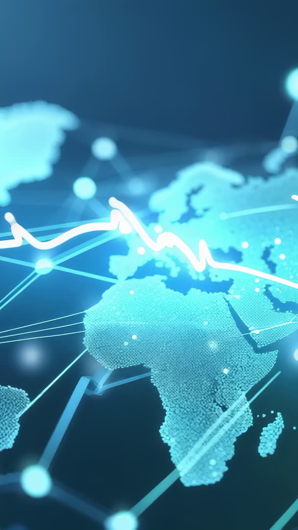 AI Generated Image. Presenting vertical motion graphic featuring dot-matrix world map linking neon nodes while pulsing data graph traveling across continents. Soft glow and interconnected lines providing depth and sense of scale. Delivering high-resolution 9:16 vertical format optimized for mobile consumption and social platforms. Suiting technology, finance, telecom, data analytics, and cybersecurity narratives. Serving as website hero background, app intro, social media story ad, corporate presentation opener, broadcast lower-third element, trade show screen background. Overlaying bold sans-serif headline and animated data readouts, pairing with ambient electronic soundtrack and subtle bass, applying cooler color grading for brand alignment, slowing motion for emphasis, looping seamlessly for ambient display. Supplying editable layers for easy text replacement and color customization when used in motion graphics templates.