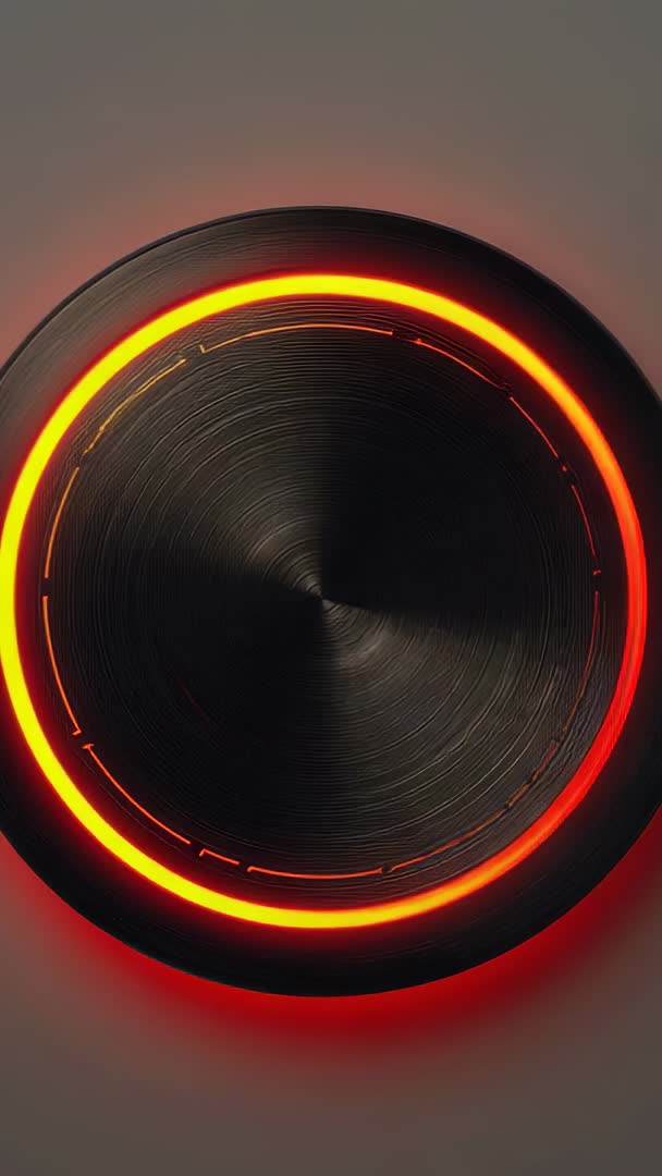AI Generated Video. Showing close-up of brushed metal control knob with rotating grain and sweeping amber LED ring powering on, creating dynamic startup animation. Highlighting tactile metal finish, warm orange glow, and precise circular motion for modern electronics and audio equipment. Suiting vertical video format, optimized for mobile social ads, app intros, product demos, and UX/UI presentations. Providing loopable motion perfect for background video, hero header, or product detail clip. Pairing with minimal text overlays, voiceover, or sound design for high-end brand campaigns and crowdfunding pages. Delivering strong visual contrast and tactile feel for industrial design, control panels, and IoT device promotions. Offering color palette centered on warm amber and deep metal tones for sleek, futuristic aesthetic.