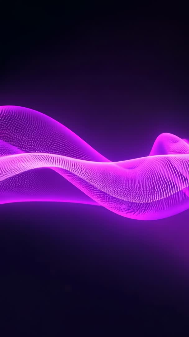 AI Generated Image. Looping vertical clip showing neon mesh ribbon flowing across dark canvas, shifting hues from hot pink to deep violet while pulsing to simulated audio. Layered mesh detail and subtle particle interference creating sense of depth and smooth motion, suitable for modern digital aesthetics. Use for mobile app backgrounds, social vertical ads, music visualizers, opening titles, concert visuals, product hero screens, digital signage, or phone wallpapers. Providing optional editing room by isolating color channels, adjusting speed, or adding logo overlays and text captions to match brand identity.