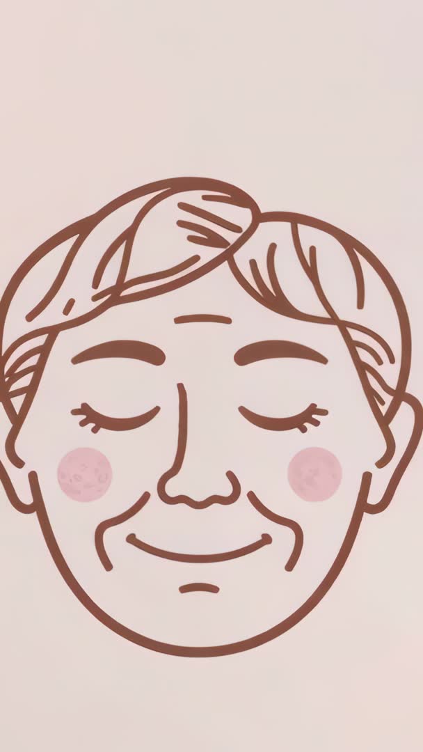 AI Generated Image. Soft looping vertical video featuring animated senior woman face blinking and smiling on beige backdrop. Minimal line art and pastel palette creating calm, approachable mood. Ideal for skincare and wellness brands promoting self care and anti aging messages. Useful for social media stories, reels, app onboarding, website hero banners, product teasers, healthcare education clips. Editable for branding, color matching, caption overlay, sound design, and looped playback. Suitable for ad campaigns, email headers, tutorial intros, and tranquil lifestyle content aimed at older adults. Delivering warm, friendly emotional tone and clear facial expression for empathy-driven messaging.