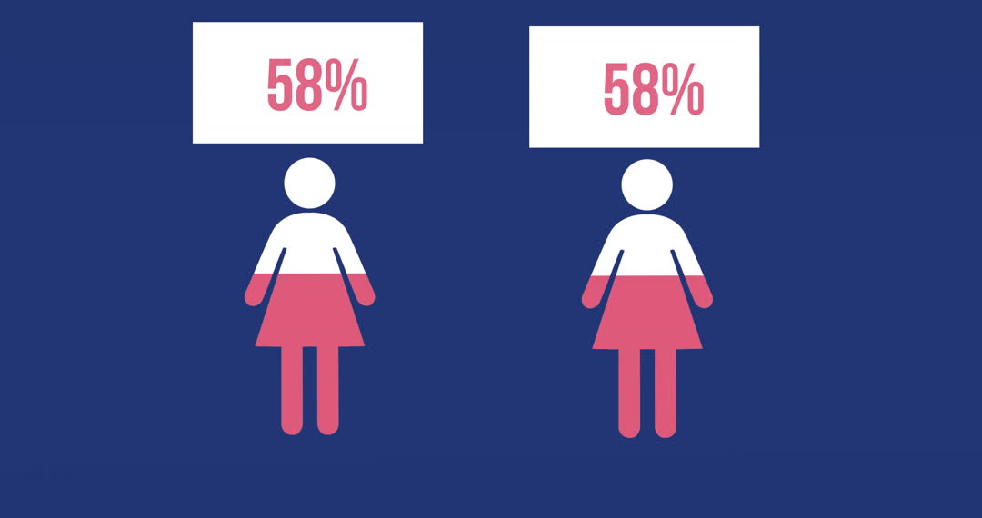 - Animating Women Pictograms Reaching 58 Percent Statistic on Blue