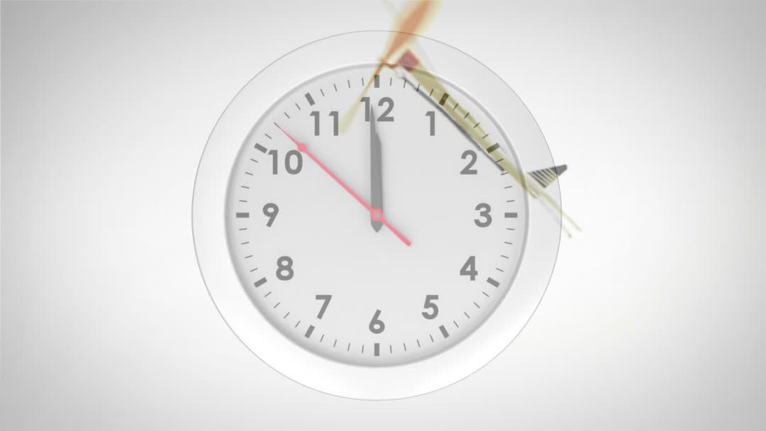 Animation of Airplane Flying Over Clock Depicting Global Travel Video