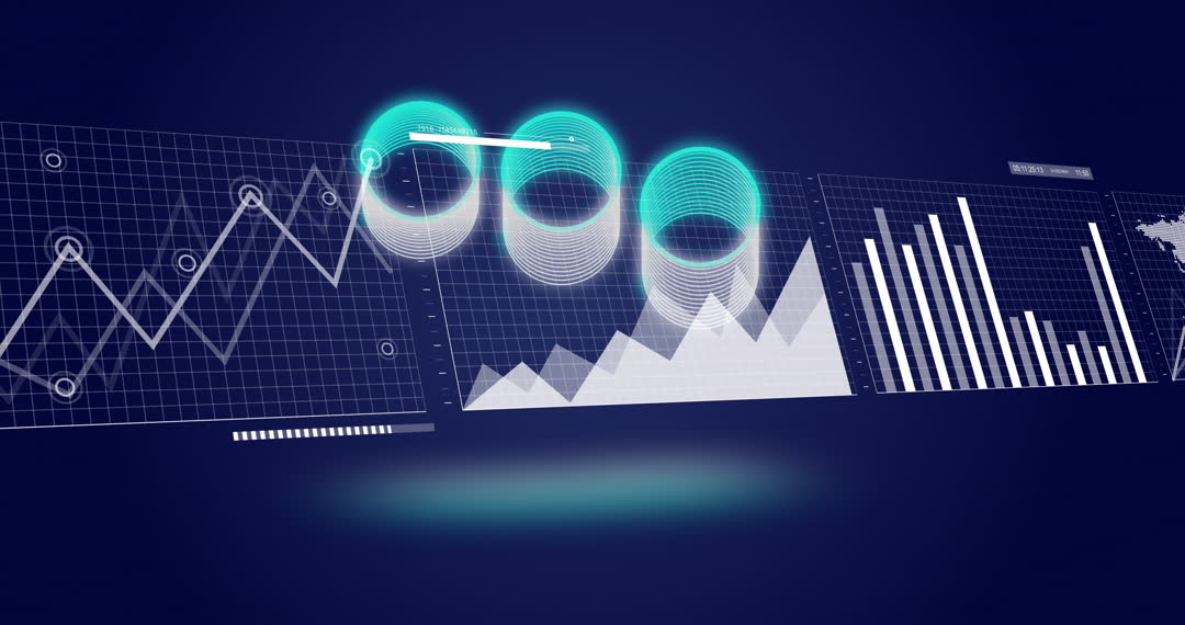 Presents a visual of complex data processing through charts and animated elements in a futuristic digital setting. Ideal for use in technology blogs, financial analyses, business predictions, digital economy concepts, and innovative business strategy presentations. Enhances content focusing on advanced data interpretation and informational accuracy.