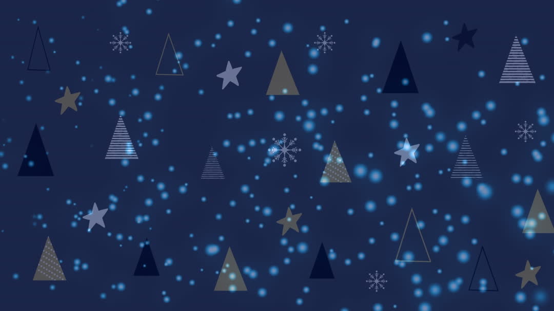 This animation features an abstract representation of Christmas, with colorful Christmas trees and snowflakes falling gently against a dark blue background. The blend of geometric tree shapes and twinkling stars provides a tranquil and festive mood. Ideal for use as a digital greeting card, a holiday-themed video, website background, or part of a seasonal marketing campaign to evoke the joy and peacefulness of winter and festive celebrations.