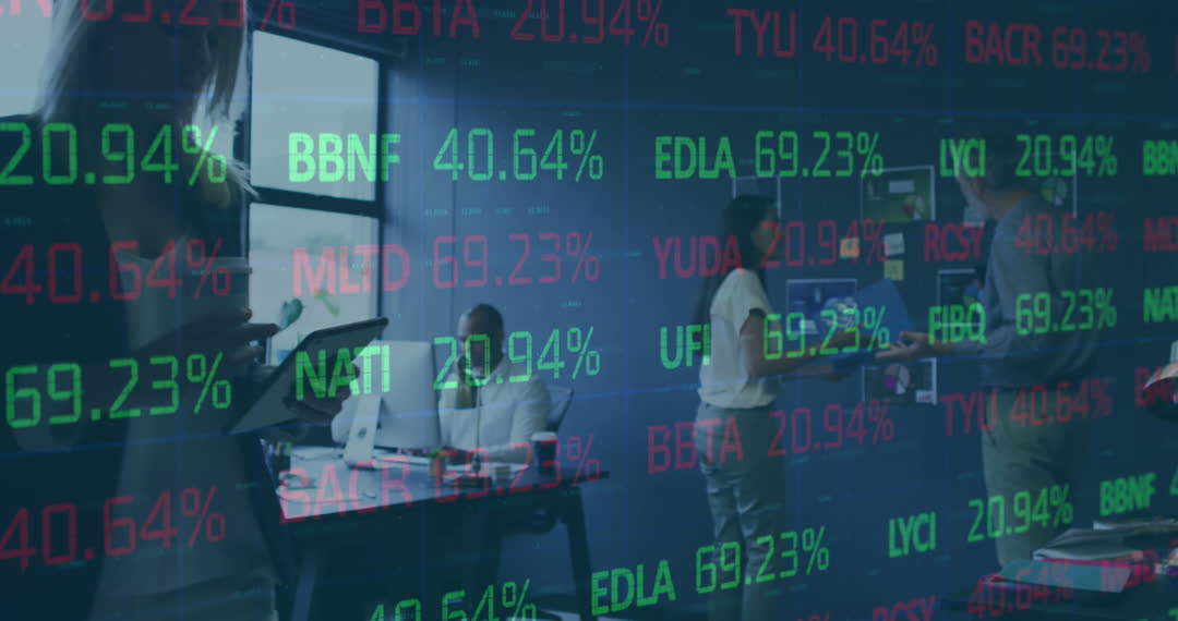 - Animation of Financial Data Overlaying Business Office