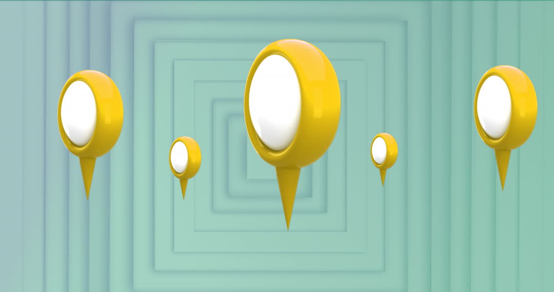 - Animation of Floating Yellow Navigation Pins in Abstract Setting
