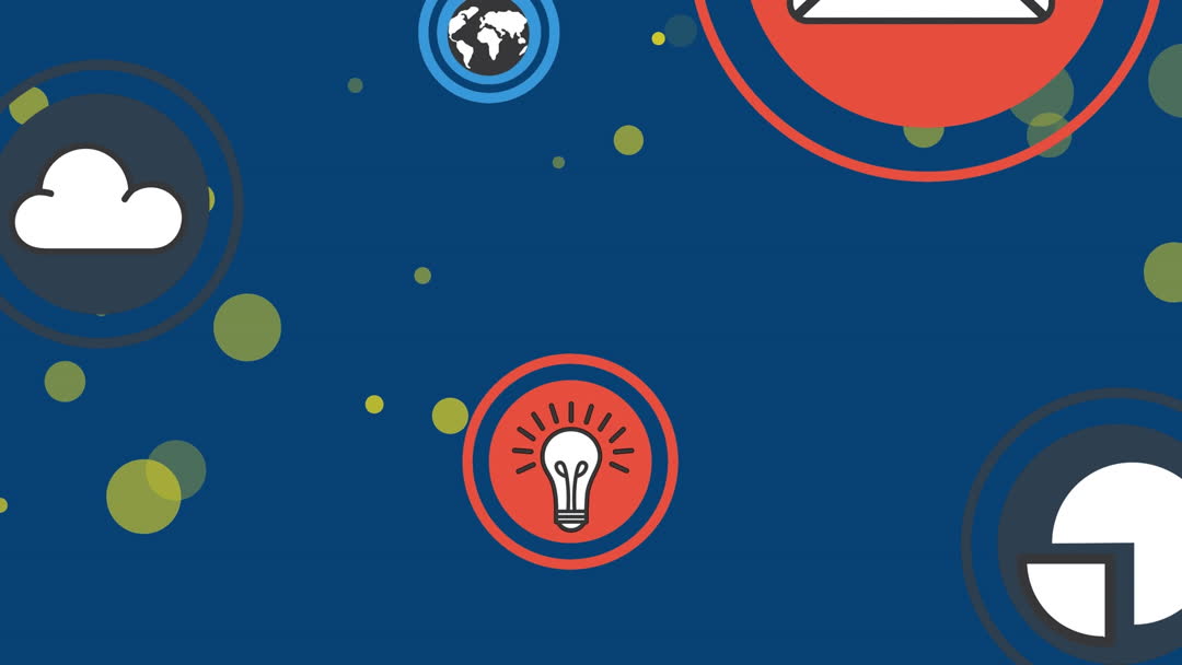 This digital animation represents various concepts related to global networking and communication through creative visuals. Icons like light bulbs, clouds, and globes are set against a blue background with diverse figures illustrating interconnectedness. This can be used in presentations about global business strategies, digital innovation, or virtual networking platforms.