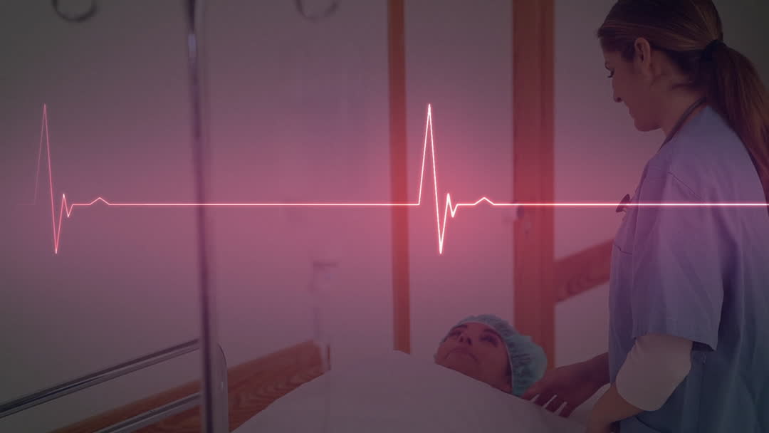 Animation of Heartbeat Line Overlay on Medical Scene Video