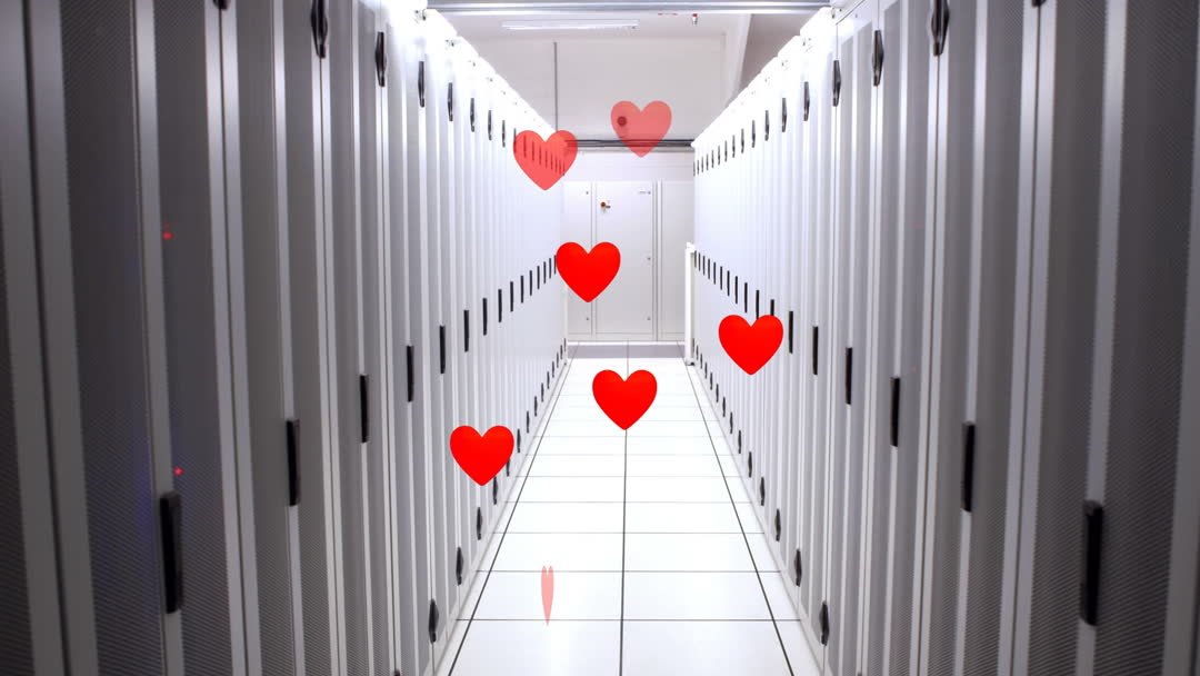 - Animation of Hearts in Data Center Aisle Illustrating Connectivity